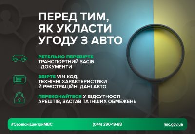 Перш ніж погоджуватись на будь-яку угоду, необхідно ретельно перевірити транспортний засіб і документи. Варто звірити VIN-код, технічні характеристики та реєстраційні дані авто, переконатися у відсутності арештів, застав або інших обмежень. Достовірність усіх документів слід перевіряти виключно через офіційні джерела.