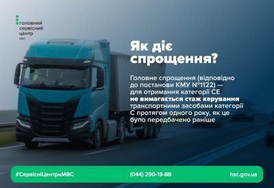 Головне спрощення — для отримання категорії CЕ не вимагається стаж керування транспортними засобами категорії С протягом одного року, як це передбачалося раніше.