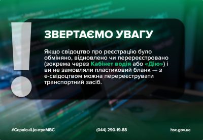 Якщо ж раніше громадянин отримував пластиковий бланк свідоцтва про реєстрацію транспортного засобу, який має цифрове відображення у Кабінеті водія або в застосунку Дія, але сам пластиковий документ було втрачено, викрадено чи пошкоджено – перед зверненням до сервісного центру МВС для перереєстрації транспортного засобу необхідно відновити саме пластиковий бланк.