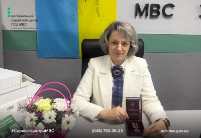 Напередодні 8 березня – Міжнародного дня боротьби за права жінок – адміністраторку сервісного центру МВС у Херсоні Тетяну Волошину відзначили державною нагородою. Їй вручили медаль Президента України «За працю і звитягу».